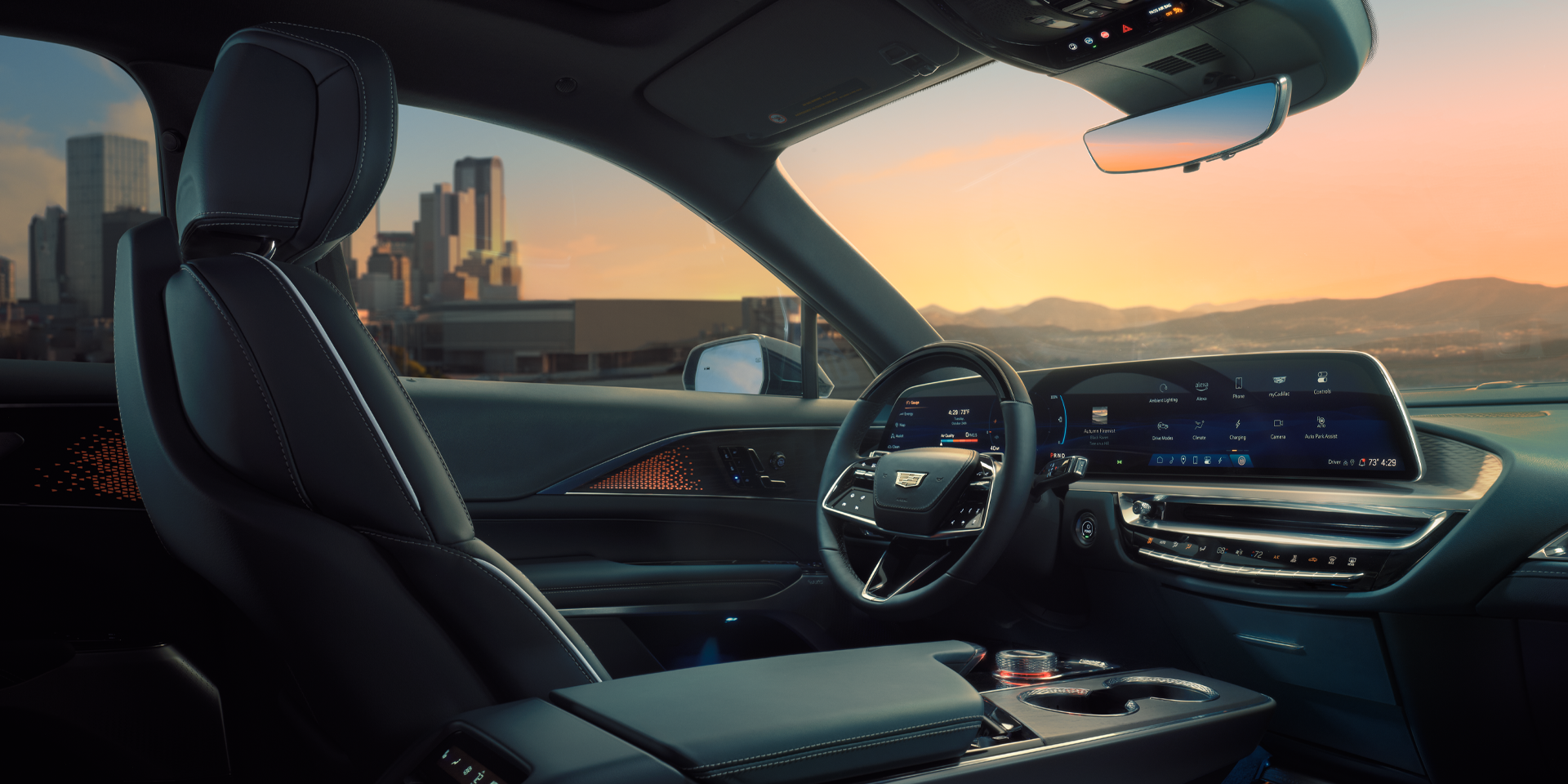Close-up of the 2025 Cadillac LYRIQ Steering Wheel and 33 Diagonal Advanced LED Display