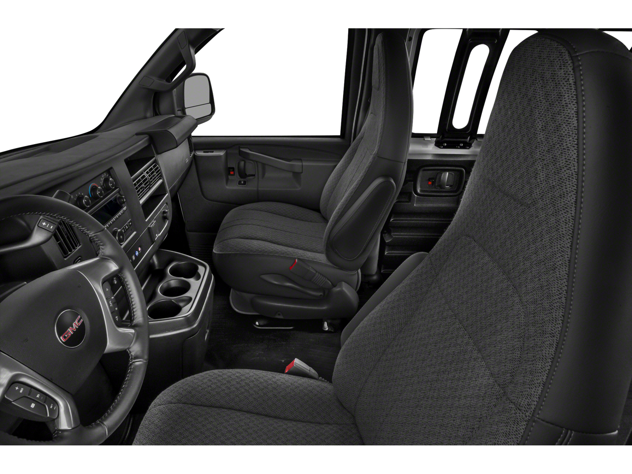- Driver and front passenger high-back bucket seats